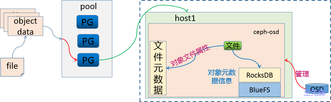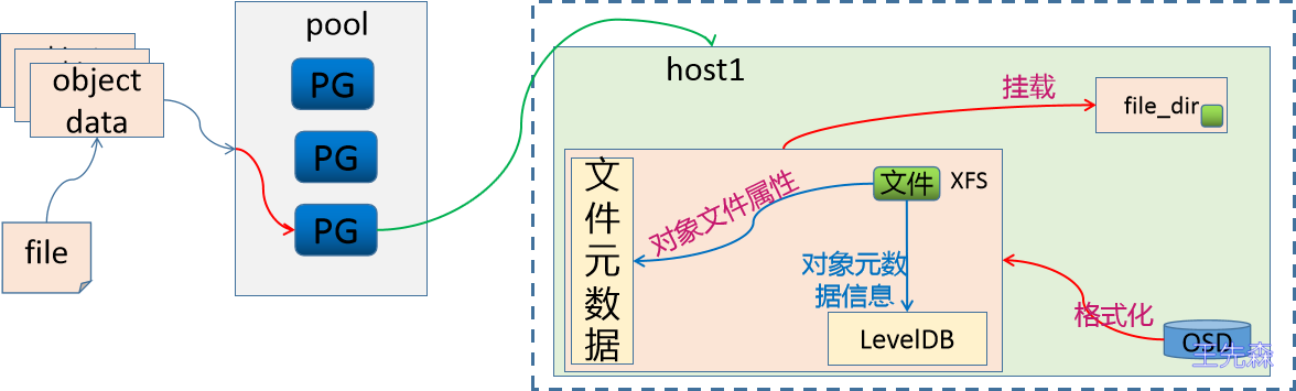 这种方式称为Filestore,因object需转为文件形式存储,在元数据读写效率上存在一定开销。