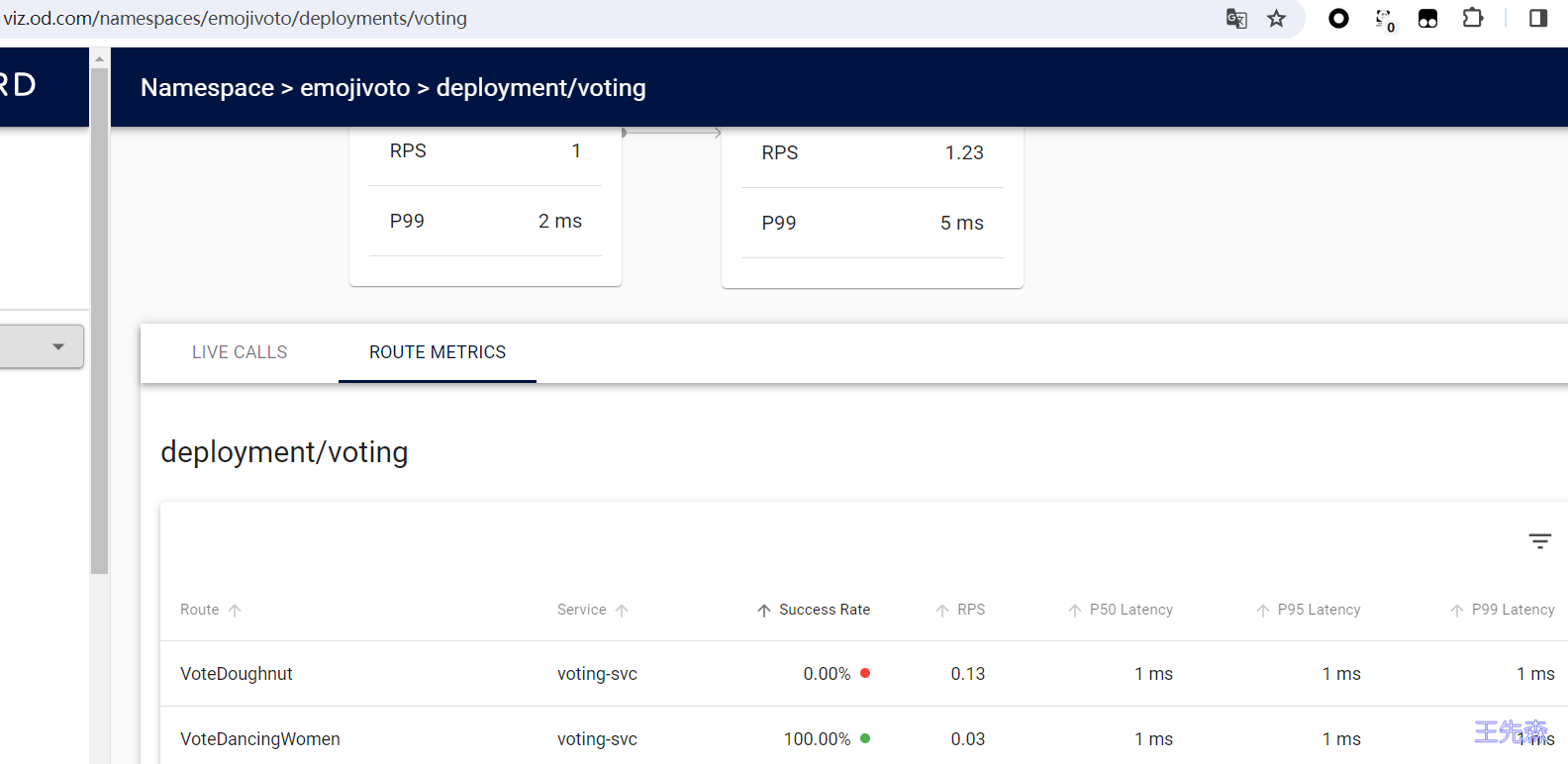 比如通过下面的命令来查看 vote-bot 服务的路由指标情况: