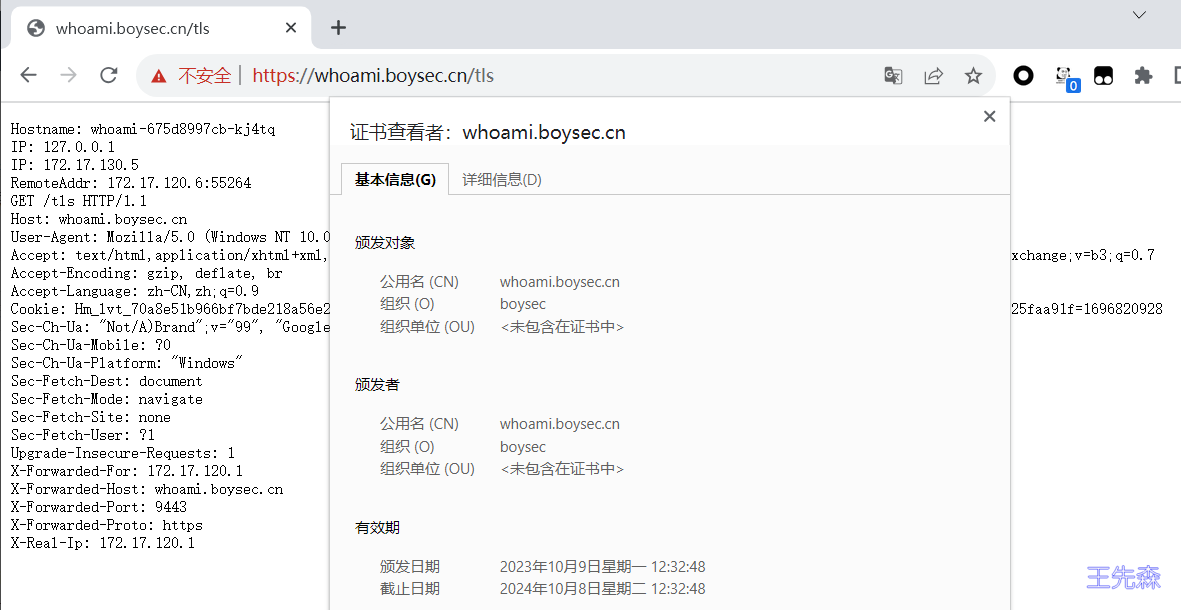| 1 | openssl req -x509 -nodes -days 365 -newkey rsa:2048 -keyout tls.key -out tls.crt -subj "/CN=whoami.boysec.cn/O=boysec" |