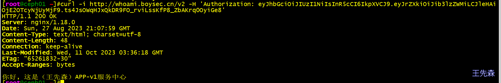 | 1 | curl -i http://whoami.boysec.cn/v2/ |