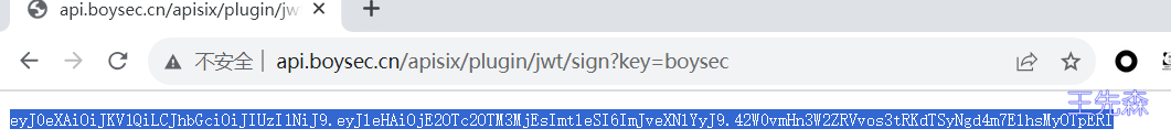 通过浏览器输入:http://api.boysec.cn/apisix/plugin/jwt/sign?key=boysec 获取jwt的Token。